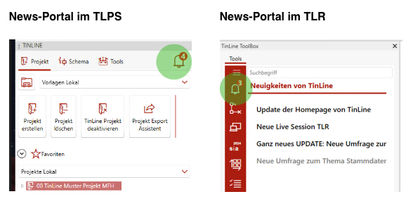 Ebenso erscheint der News-Button in TinLine Plan und Schema 23 sowie TinLine Revit 2023 und 2024.